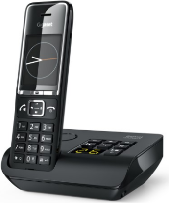 Gigaset COMFORT 550A. Typ: Analoges Telefon, Hörertyp: Kabelloses Mobilteil. Freisprecheinrichtung. Maximum Innenabstand: 50 m, Maximum Außenabstand: 300 m. Telefonbuch Kapazität: 200 Eintragungen. Anrufer-Identifikation. Bildschirmdiagonale: 5,59 cm (2.2 Zoll). SMS (Kurznachrichtendienst). Produktfarbe: Schwarz. Anzahl enthaltener Handsets: 1 (S30852-H3021-B104)