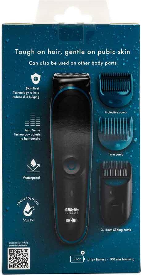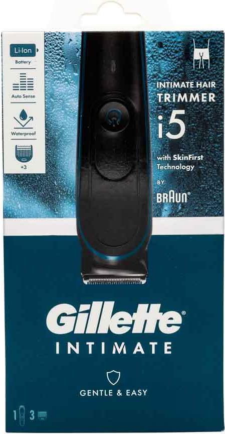 • Gillette INTIMATE i5. Produktfarbe: Schwarz, Form: Rechteck. Energiequelle: Akku, Betriebsdauer: 100 min, Akku-/Batterietyp: Integrierte Batterie (8700216015813)