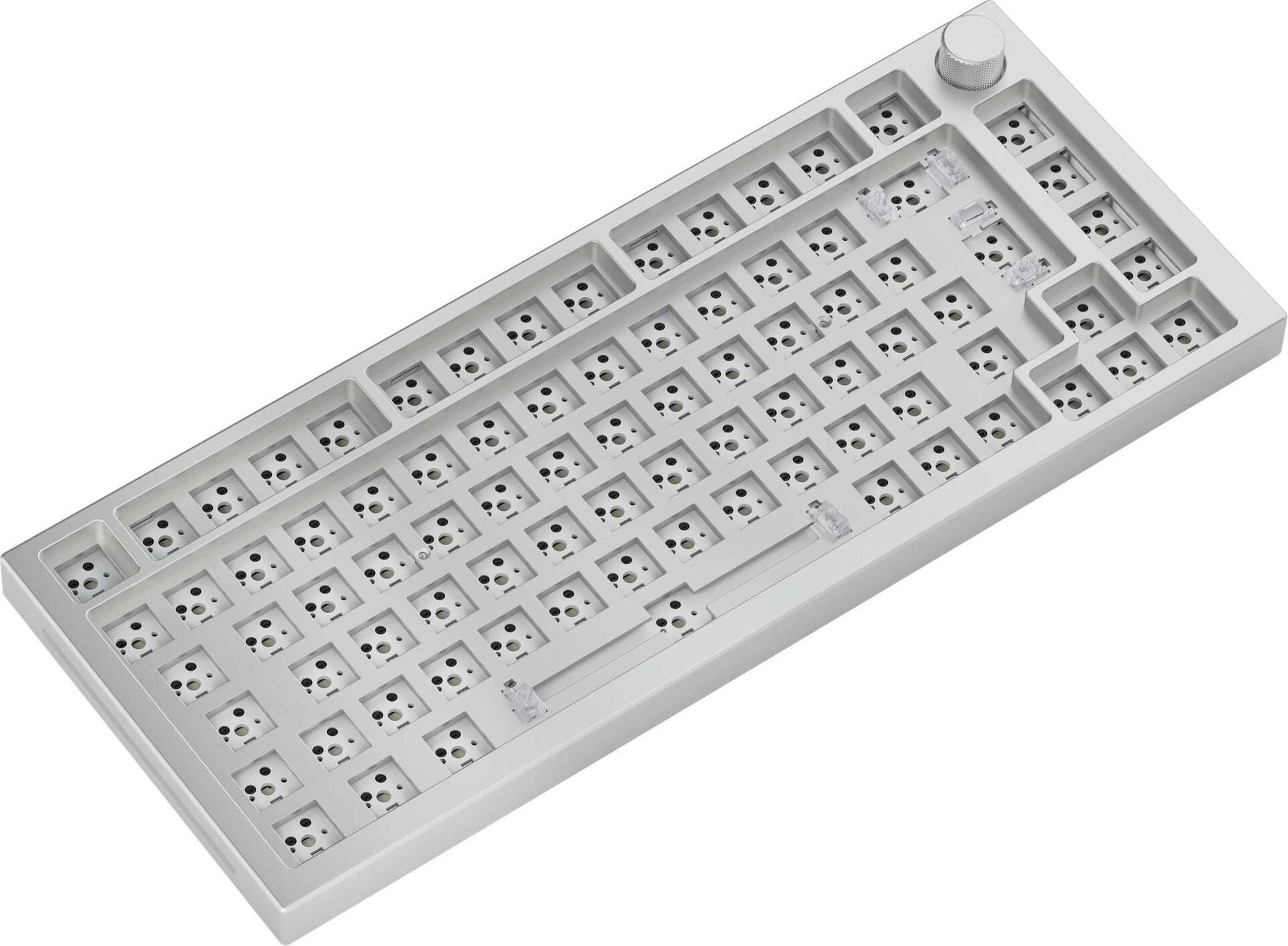 Glorious GMMK Pro White Ice 75% TKL Tastatur - Barebone, ISO-Layout, silber (GLO-GMMK-P75-RGB-ISO-W) (geöffnet)