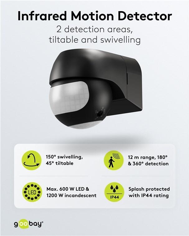 Goobay 2-Bereichs-Bewegungsmelder, neigbar/schwenkbar, schwarz (79597)