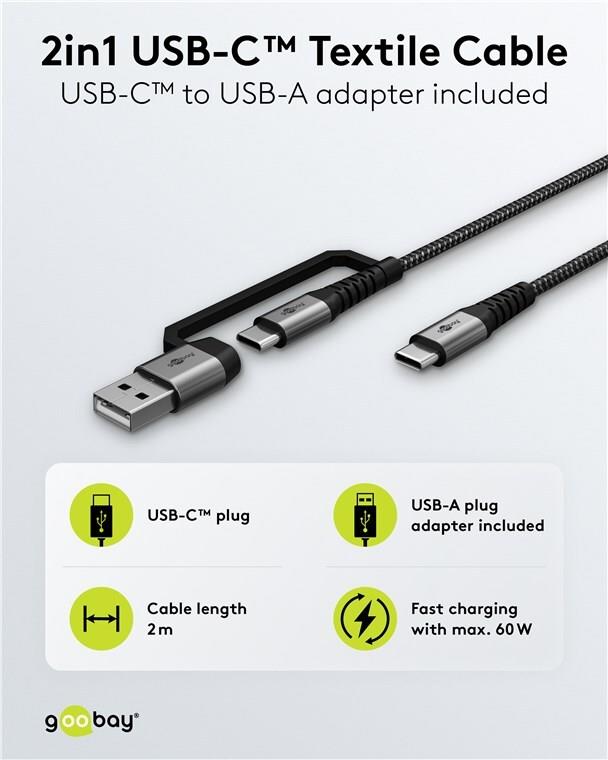 • Goobay 2in1 USB-Textilkabel spacegrau/silber 2 m - extrarobustes USB-C -Ladekabel mit (70278)
