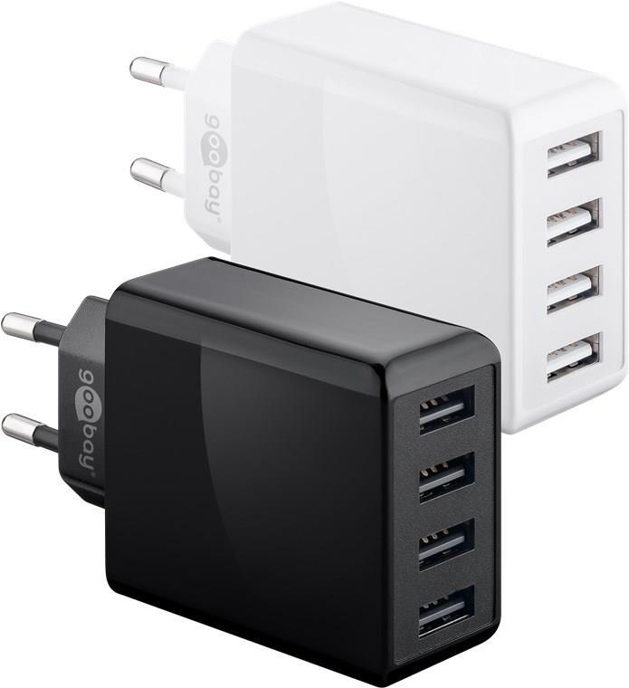 Goobay 4-fach USB-Ladegerät 30W, Weiß - mit 4x USB-Buchse, flache Bauform (44962)