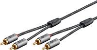 Goobay 65293. Anschluss 1: 2 x RCA, Steckverbinder 1 Geschlecht: Männlich, Anschluss 2: 2 x RCA, Steckverbinder 2 Geschlecht: Männlich, Kabelmaterial: Kupfer, Beschichtung Steckerkontakte: Gold, Magnetisch abgeschirmt, AWG Kabelgröße: 28, Kabellänge: 2 m, Produktfarbe: Grau (65293)