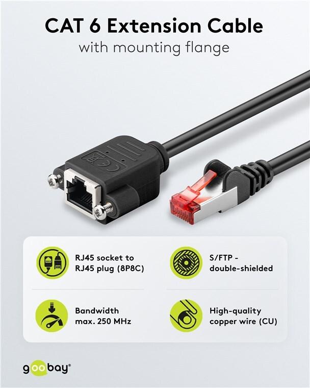 Goobay 65636 - Cat.6 Verlängerungskabel S/FTP PiMF schwarz 0.5 m - Verlängerungskabel - Netzwerk - SFTP - 0,5 m (65636)