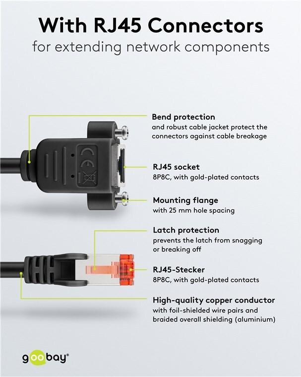 • Goobay 65636 Cat.6 Verlängerungskabel S/FTP PiMF schwarz 0.5 m (65636)