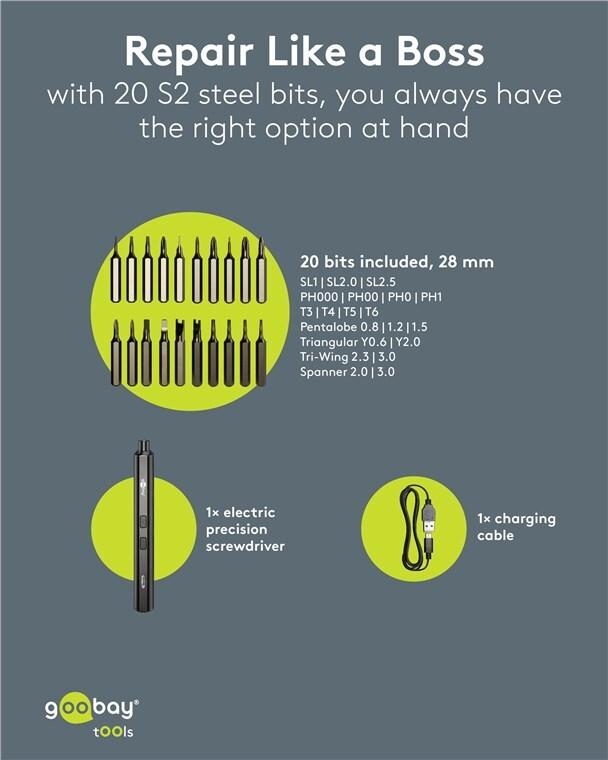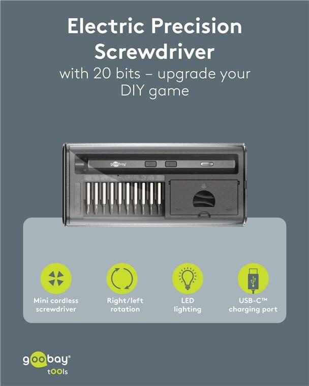 Goobay 77838 - Elektrischer Präzisionsschraubendreher m. Akku 20 teilig LED (77838)