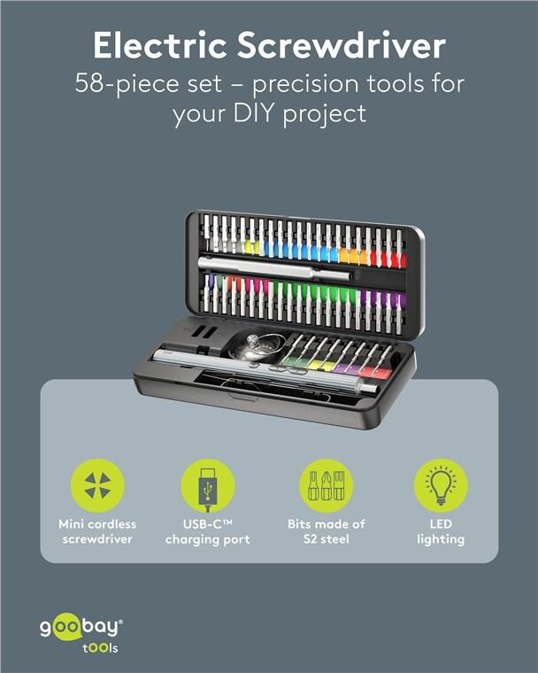 • Goobay 77839 - Elektrischer Präzisionsschraubendreher m. Akku 50 teilig LED (77839)