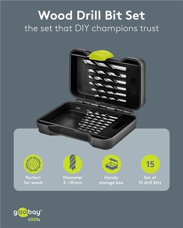 Goobay 77847 - Holzbohrer Set 15 teilig in Transportbox O 3 - 10 mm (77847)