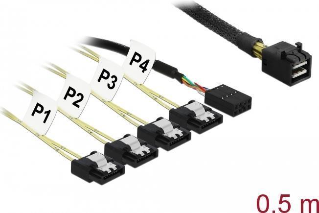 Delock Kabel Mini SAS HD SFF-8643 > 4 x SATA 7 Pin Reverse + Sideband 0,5 m (83320)