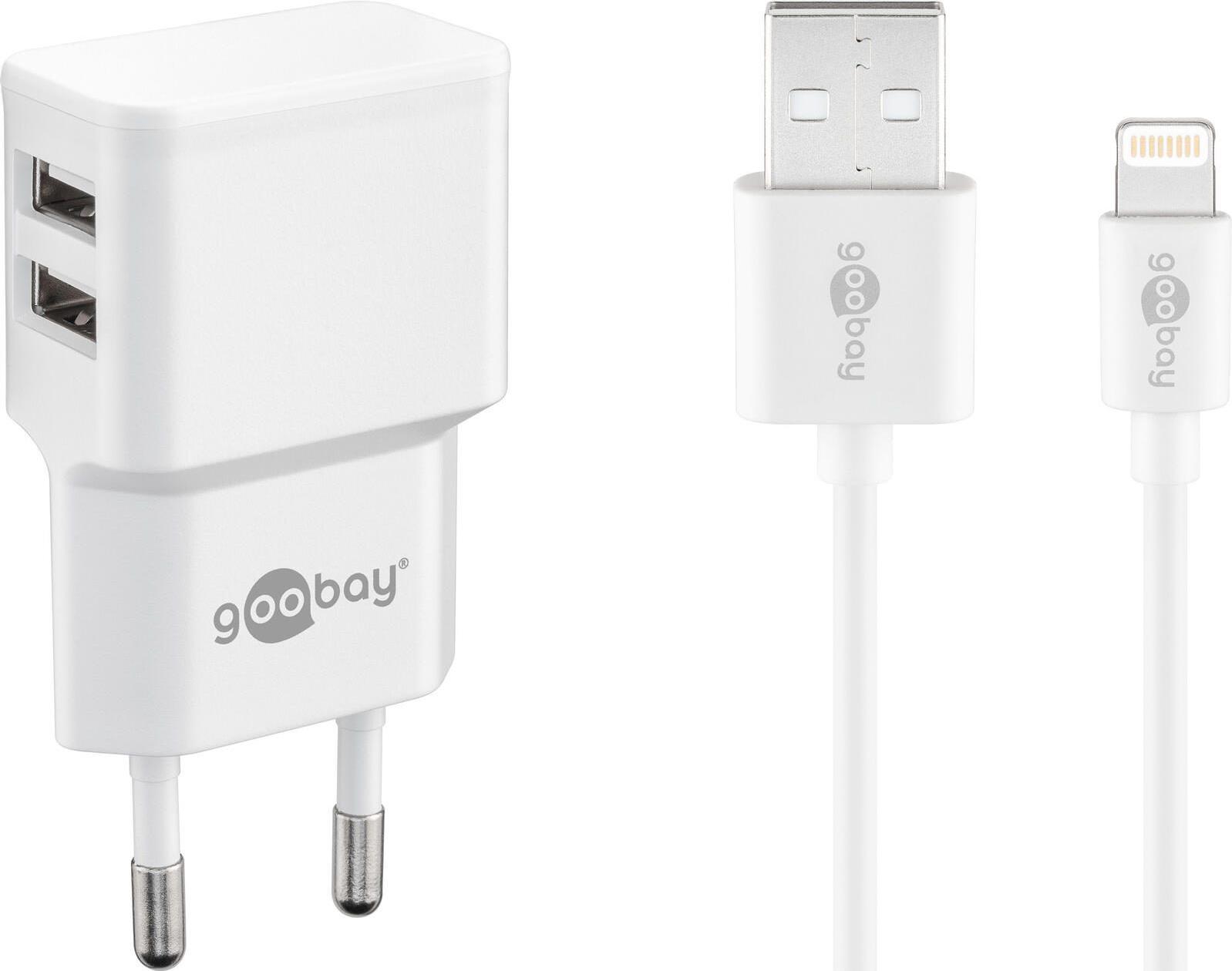 Goobay Apple Lightning Dual Ladeset 2,4 A, Weiß, 1 m - Netzteil mit 2x USB-Buchse und Apple Lightning-Kabel (44979)
