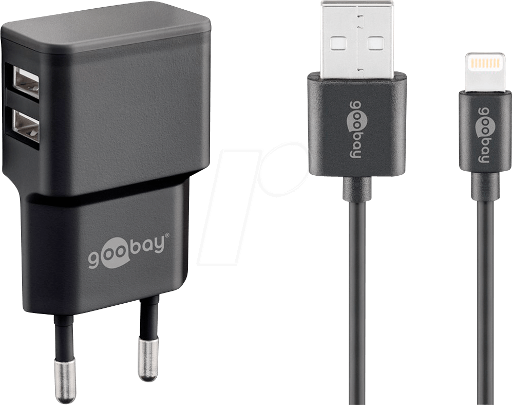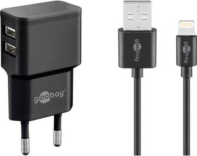 Goobay Apple Lightning Dual Ladeset 2,4 A, Schwarz, 1 m - Netzteil mit 2x USB-Buchse und Apple Lightning-Kabel (44995)