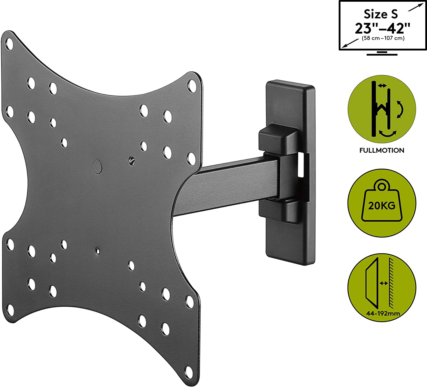 Goobay Basic TV-Wandhalterung Basic FULLMOTION (S), Schwarz - für Fernseher von 58,40cm (23") bis 106,70cm (42") (58-107cm) , vollbeweglich (schwenkbar und neigbar) bis 20kg (49713)