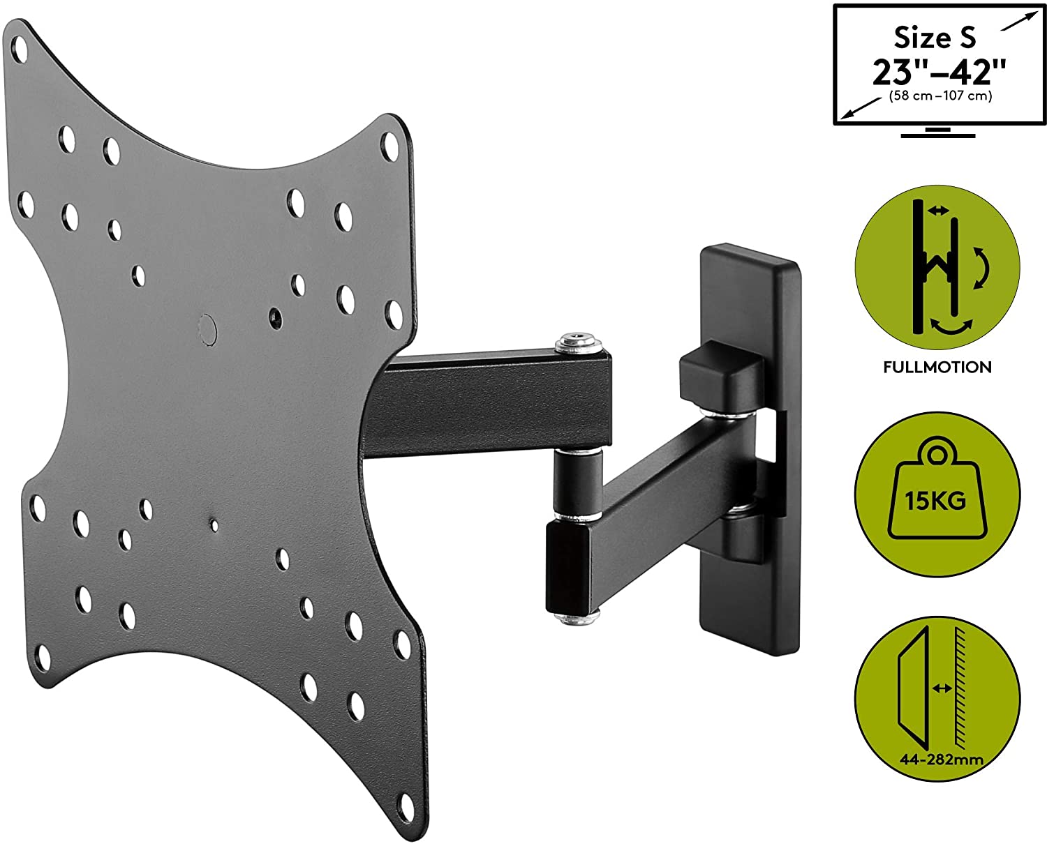 Goobay Basic TV-Wandhalterung Basic FULLMOTION (S), Schwarz - für Fernseher von 58,40cm (23") bis 106,70cm (42") (58-107cm) , vollbewegliches Doppelarmgelenk (schwenkbar und neigbar) bis 15kg (49714)
