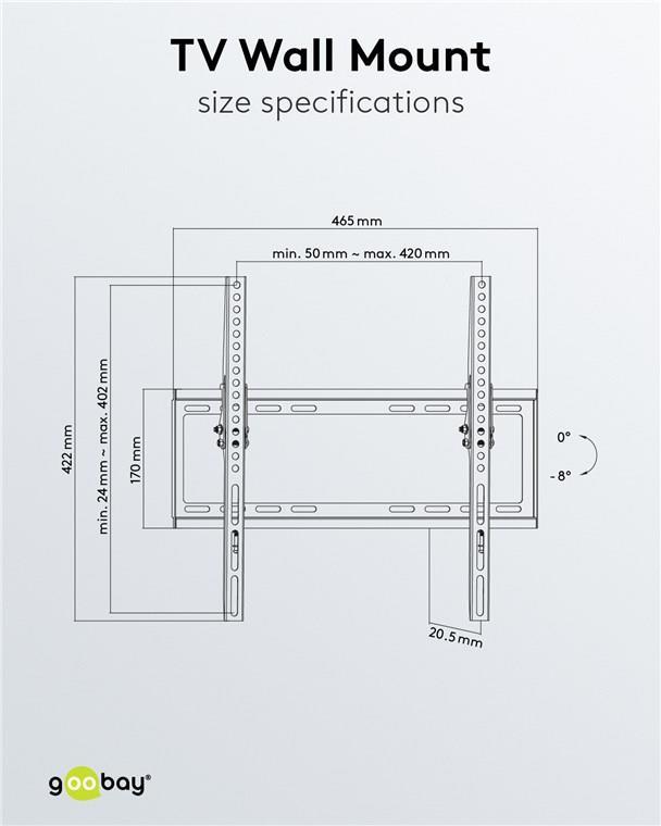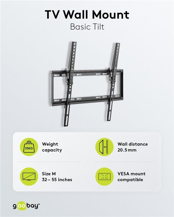 Goobay Basic TV-Wandhalterung Basic TILT (M), M (81-140 cm / 32-55"), Schwarz - für Fernseher von 81,30cm (32") bis 139,70cm (55") (81-140 cm), neigbar bis 35kg (49731)