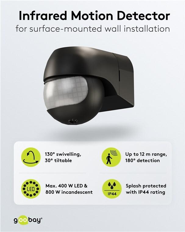 Goobay Bewegungsmelder, neigbar/schwenkbar, schwarz (79592)