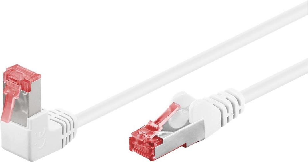 Goobay CAT 6 Patchkabel 1x 90° gewinkelt, S/FTP (PiMF), Weiß, 0.5 m - Rastnase oben, LSZH halogenfrei, Kupfer (51549)