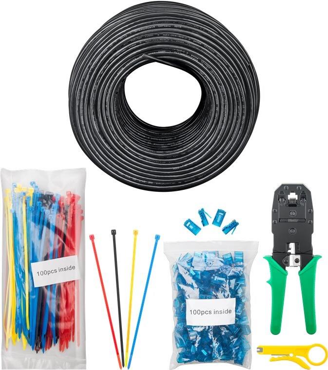 Goobay CAT 6 Outdoor Netzwerkkabel-Set, U/UTP, Schwarz, 100 m - Kupfermaterial, AWG 24/1 (solid), PE (55440)