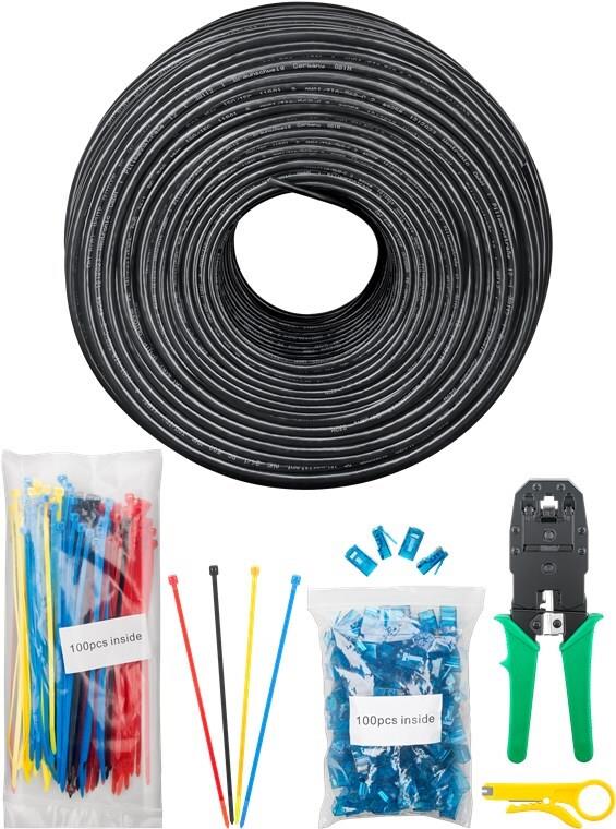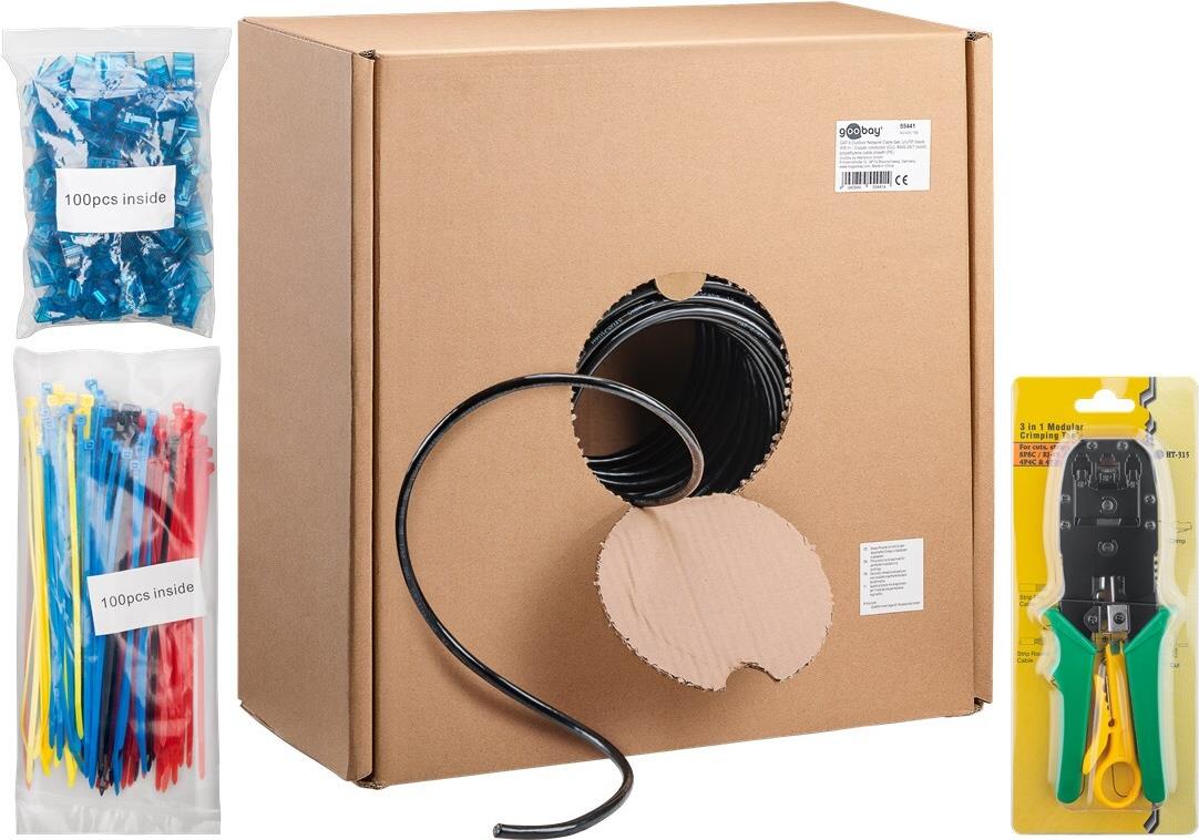 Goobay CAT 6 Outdoor Netzwerkkabel-Set, U/UTP, Schwarz, 305 m - Kupfermaterial, AWG 24/1 (solid), PE (55441)