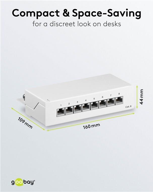 Goobay CAT 6 Mini/Desktop Patch Panel, 8 Port, Weiß - STP geschirmt, Weiß (62069)