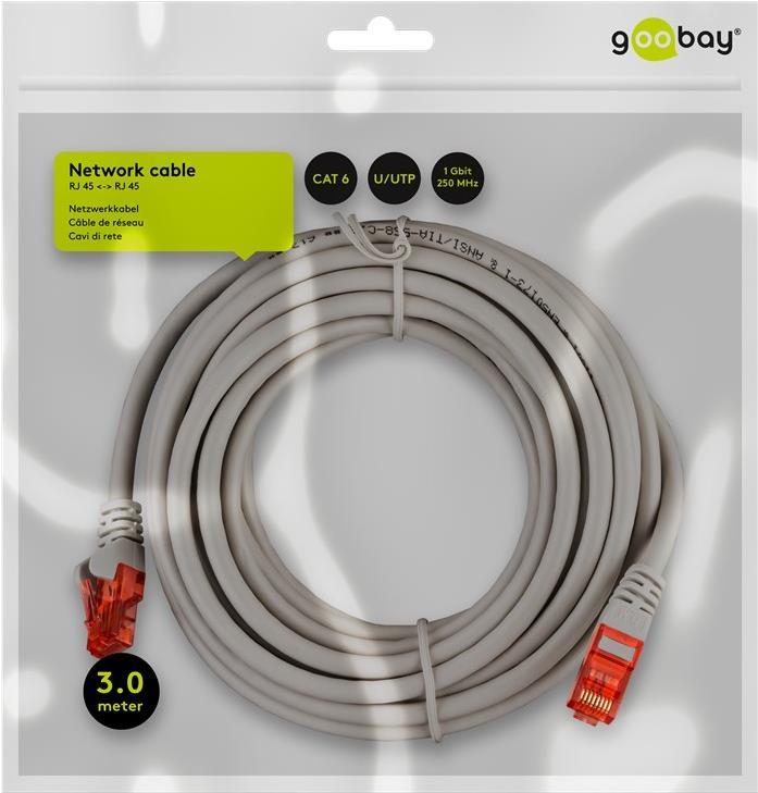 Goobay CAT 6 Patchkabel, U/UTP, Grau, 3 m - CCA Kupfergemisch (72576)