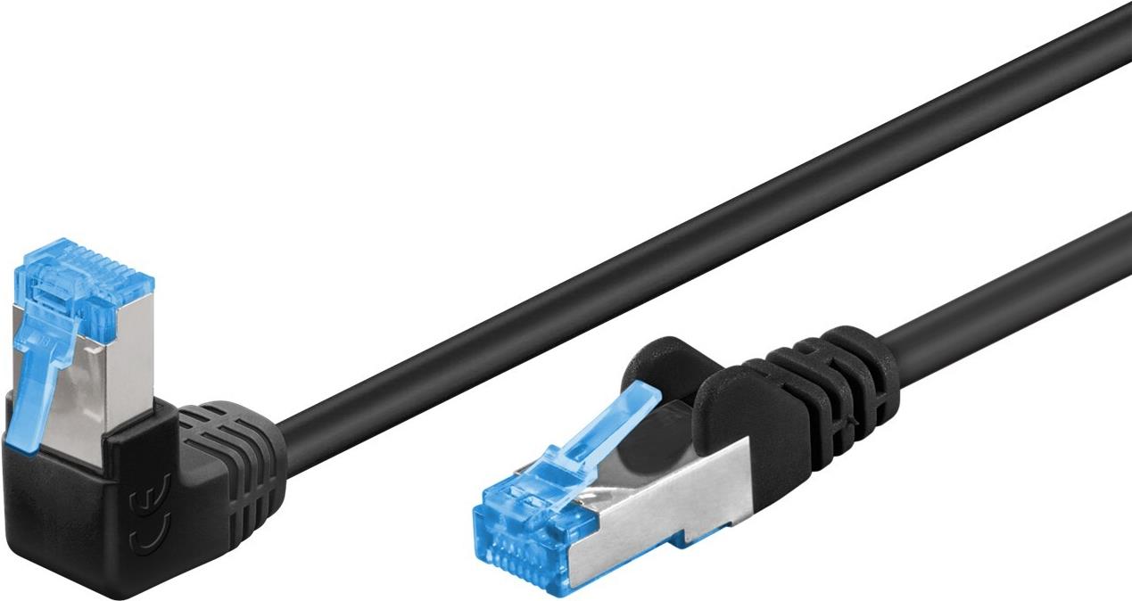 Goobay CAT 6A Patchkabel 1x 90° gewinkelt, S/FTP (PiMF), Schwarz, 1 m - Rastnase oben, LSZH halogenfrei, Kupfer (51557)
