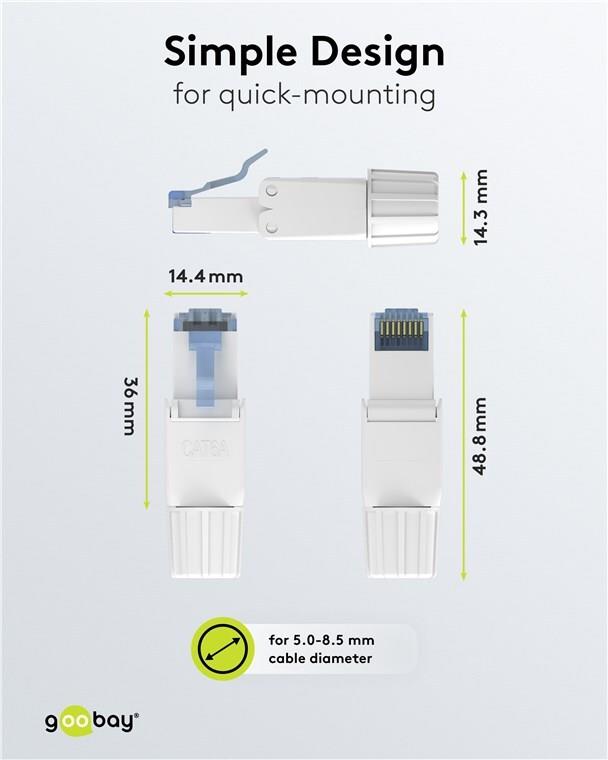 Goobay CAT 6A feldkonfektionierbarer RJ45-Stecker UTP ungeschirmt - für 5.0-8.5 mm (65941)