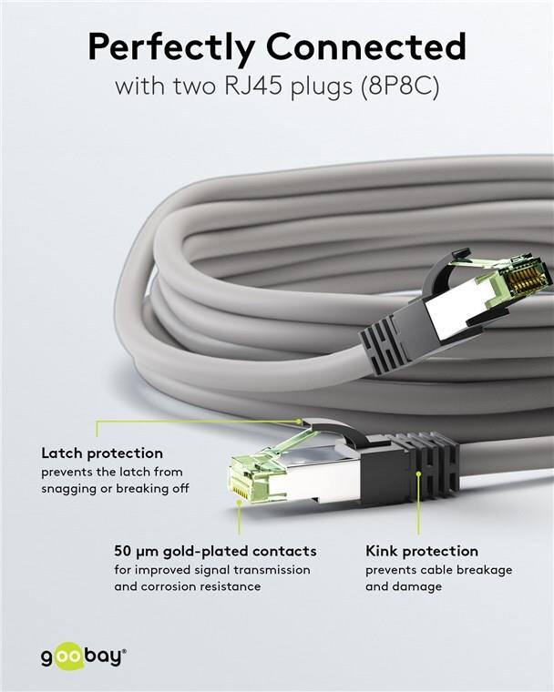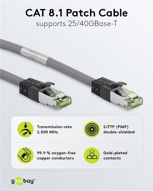 Goobay CAT 8.1 Patchkabel, S/FTP (PiMF), Grau, 2 m - LSZH halogenfrei, Kupfer AWG 24 (55137)