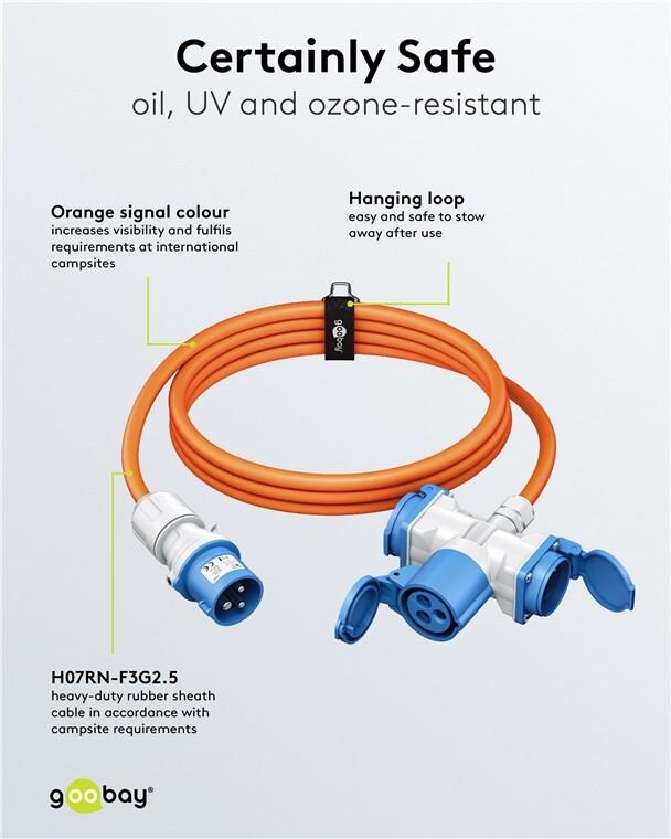 • Goobay CEE-Adapterleitung CEE-Stecker auf 1x CEE-Kupplung und 2x Schutzkontakt-Kupplung (76266)