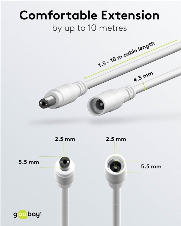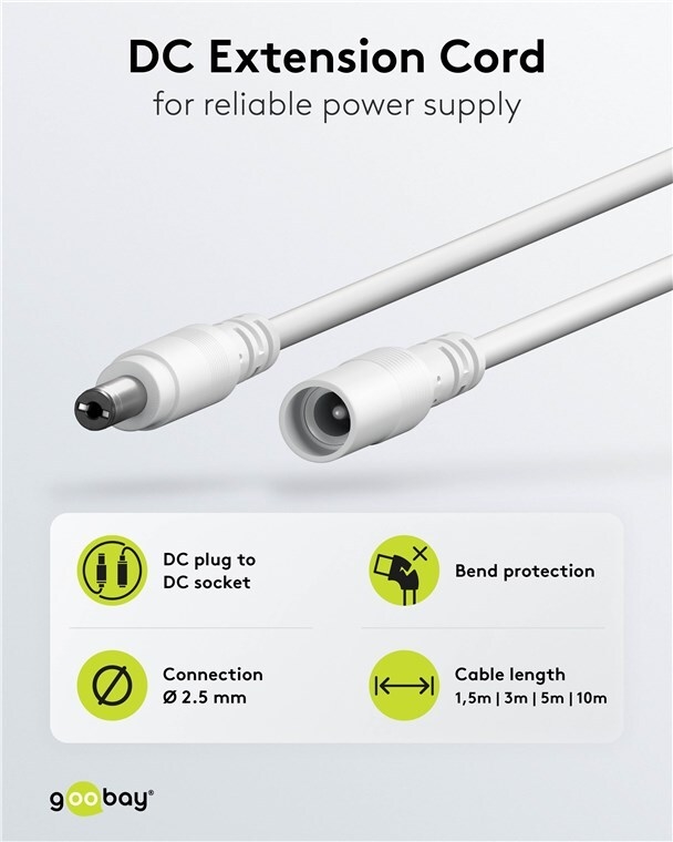 • Goobay DC-Verlängerungskabel 3 m weiß - mit Hohlstecker 5.5 x 2.5 mm (76679)