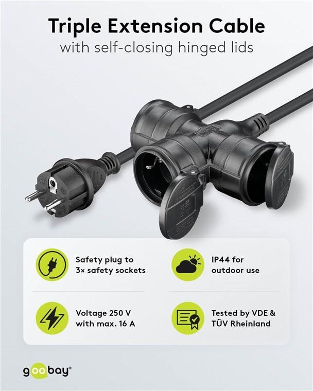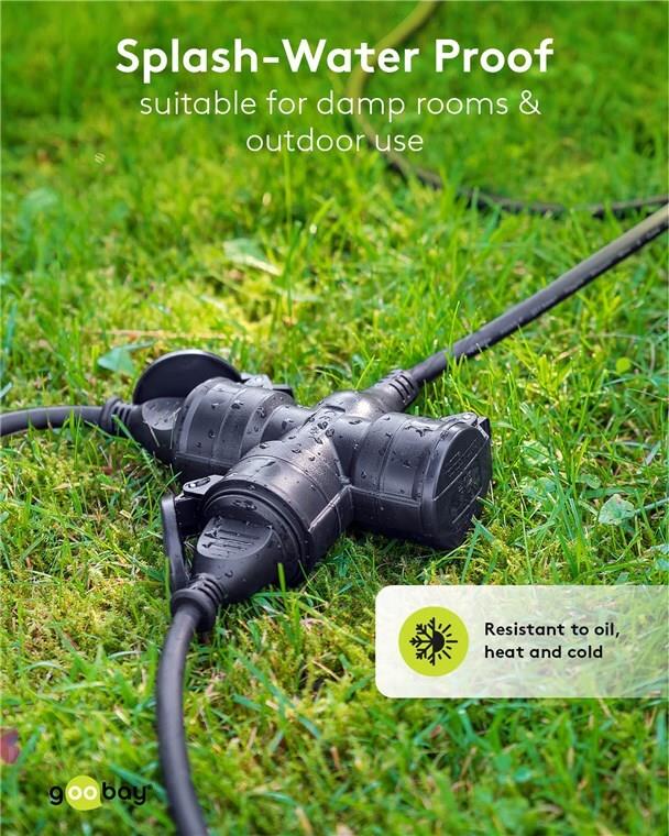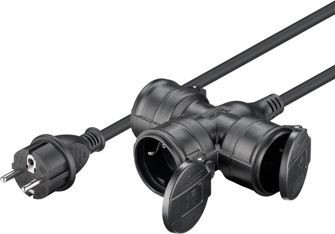 • Goobay Dreifach-Verlängerungskabel Outdoor 10 m schwarz - Schutzkontaktstecker Typ F (65438)