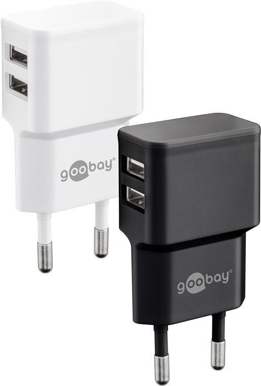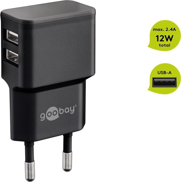 Wentronic goobay Dual USB charger - Netzteil - 12 Watt - 2,4 A - 2 Ausgabeanschlussstellen (USB) - Schwarz (44951)