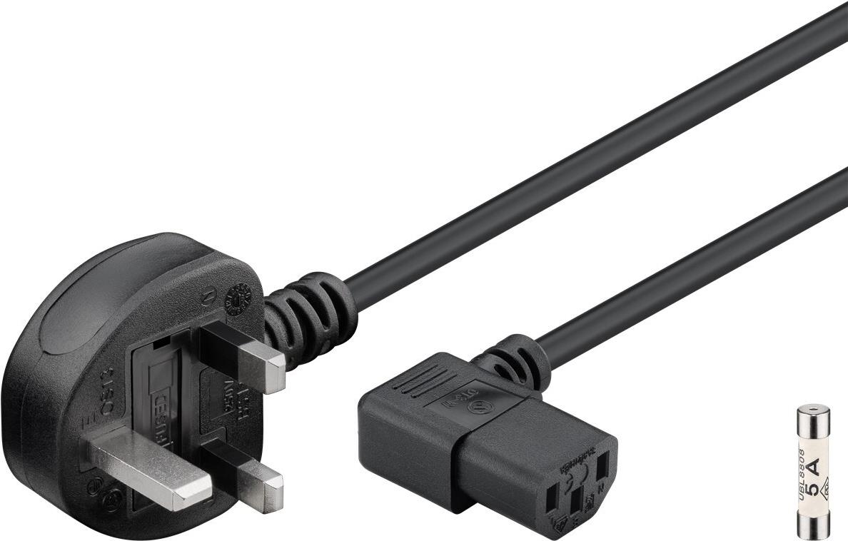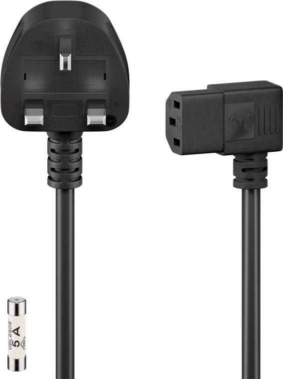 Goobay Geräteanschlusskabel Großbritannien, 2 m, Schwarz, 2 m - Großbritannien 3-Pin-Stecker (Typ G, BS 1363) > Gerätestecker C13 (abgewinkelt) (45767)