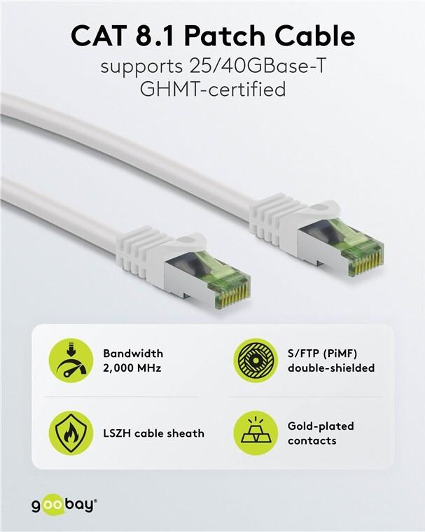 Goobay GHMT-zertifiziertes CAT 8.1 Patchkabel, S/FTP (PiMF), weiß (61105)