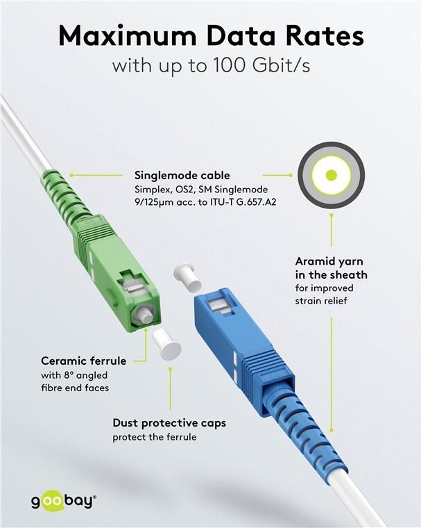 Goobay 59625 Glasfaserkabel 25 m SC/UPC SC/APC FTTH OS2 Weiß (59625)