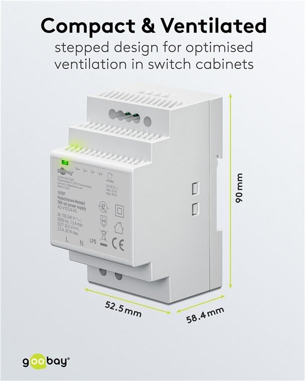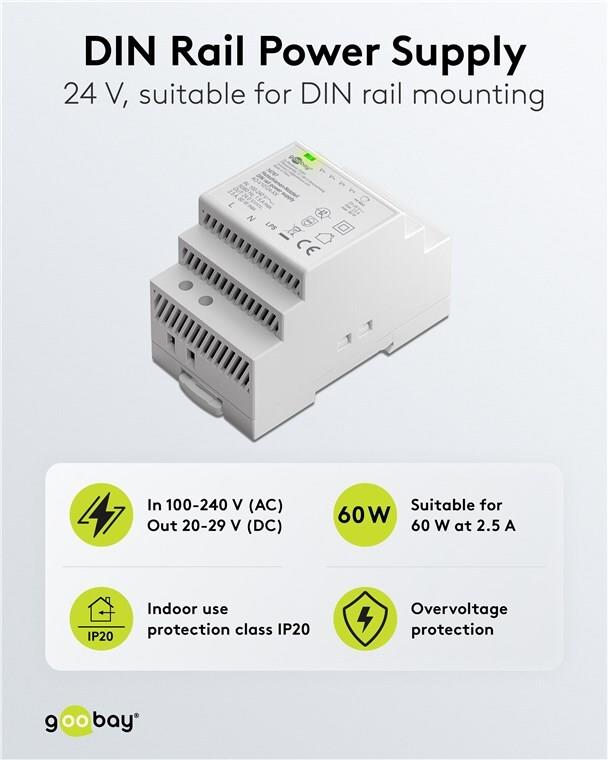 • Goobay Hutschienen-Netzteil DIN-Rail 24 V DC 2.5 A 60 W - geeignet für DIN-Montage (74767)