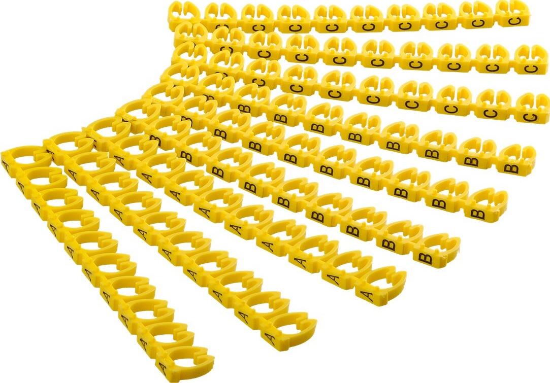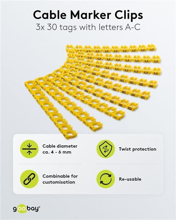 Goobay Kabelmarker-Clips "Buchstaben A-C", für Kabeldurchmesser bis 6 mm, 6 mm - farbige Kennzeichnungsringe 3x 30 Stück zum Markieren von z.B. Netzwerkkabeln (72518)