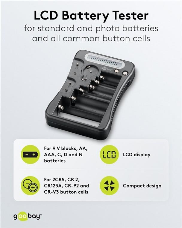 • Goobay LCD-Batterietester - für Standard- und Fotobatterien sowie alle gängigen (72511)