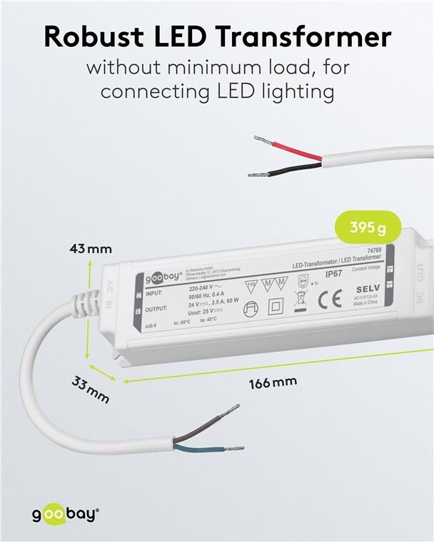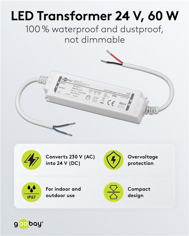 • Goobay LED-Trafo 24 V DC 60 W IP67 - Konstantspannungstrafo CV für den (74769)