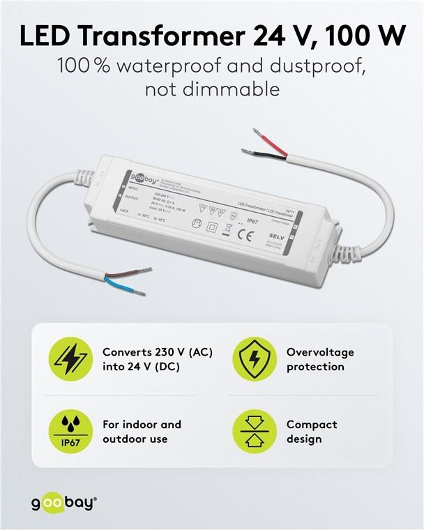 • Goobay LED-Trafo 24 V DC 100 W IP67 - Konstantspannungstrafo CV für den (74771)