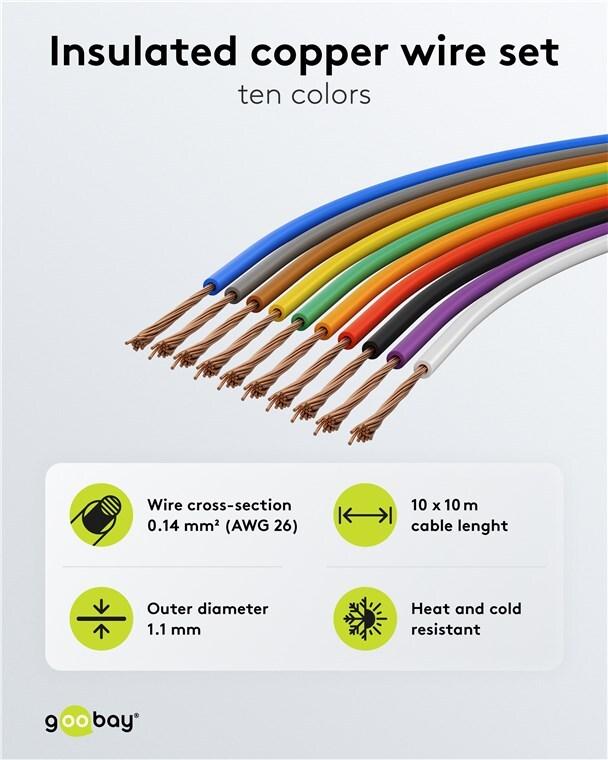 • Goobay LITZE 77685 - Kupferlitze isoliert 10 m 10x 0.14 mm² mehrfarbig (77685)