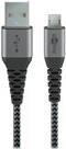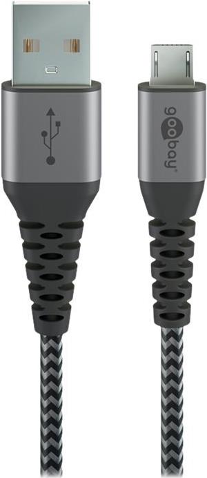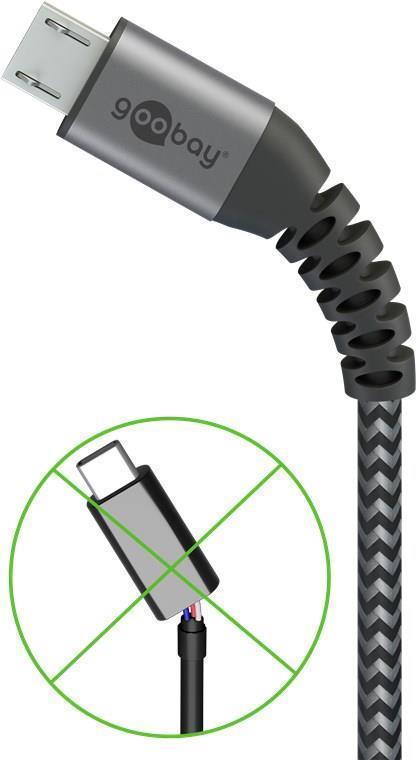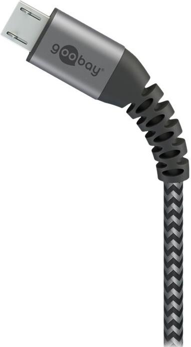 Goobay Micro-USB auf USB-A Textilkabel mit Metallsteckern (space grau/silber) 1 m, 1 m, Schwarz-Grau - elegantes und extra-robustes Verbindungskabel für Geräte mit Micro-USB An (49282)