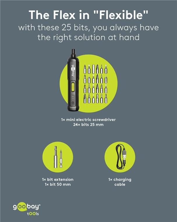 • Goobay Mini-Akkuschrauber-Set 28-tlg. - Stabschrauber mit Werkzeug-Set aus 24 Bits 1 (77816)