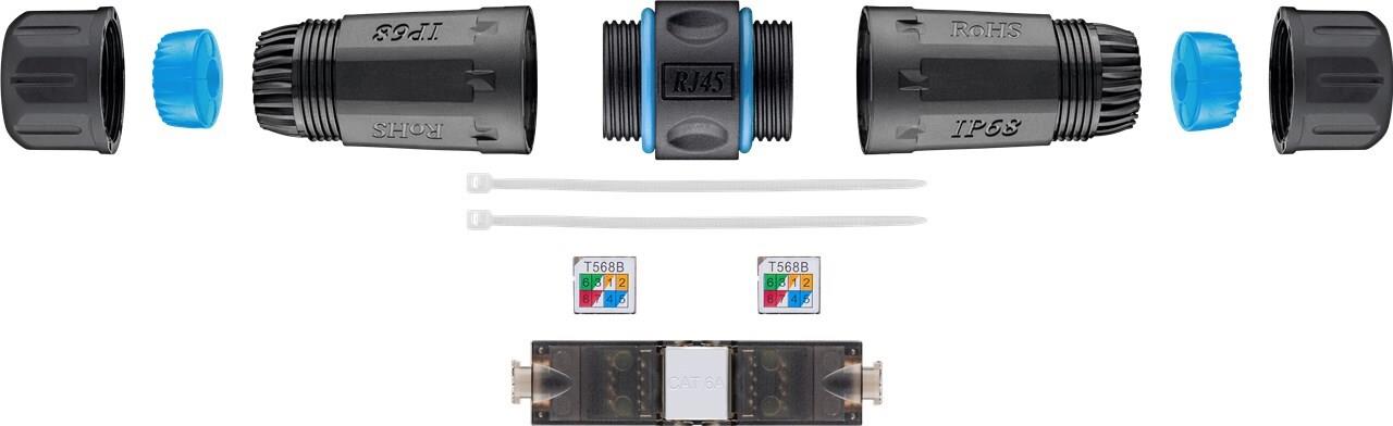 Der Kabelverbinder für den Außenbereich ist ausgelegt für eine 8-adrige Verbindung, Verlängerung, Reparatur oder Umverlegung von Daten-/ LAN-Netzwerk-Kabeln und macht klobige Connection-Boxen überflüssig. Einfachste Konfektionierung ohne Spezialwerkzeuge und problemloses verlängern. Außengehäuse aus Kunststoff PA66, Schutzklasse IP68, beidseitig mit Zugentlastungen ausgestattet ist.