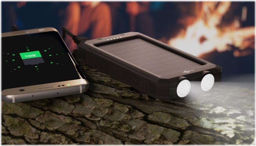 Wentronic goobay Outdoor PowerBank 8,0 - Solar-Powerbank - Li-Pol - 8000 mAh - 29,6 Wh - 2 A - 2 Ausgabeanschlussstellen (2 x USB) - auf Kabel: Micro-USB - Schwarz (49216)