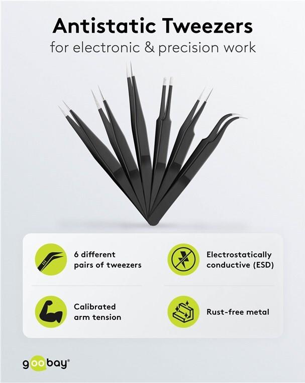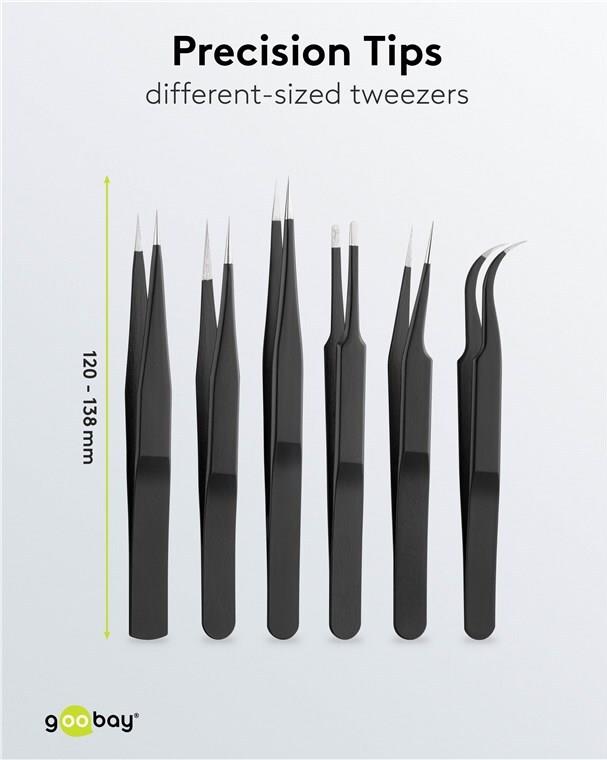 Goobay Pinzetten-Set 6-teilig - aus rostfreiem Edelstahl (41256)