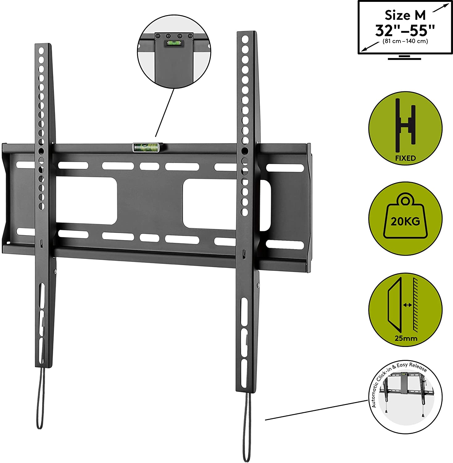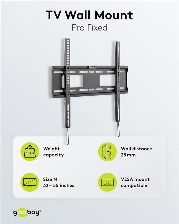 Goobay Pro TV-Wandhalterung Pro FIXED (M), Schwarz - für Fernseher von 81,30cm (32") bis 139,70cm (55") (81-140 cm) bis 50kg (49890)