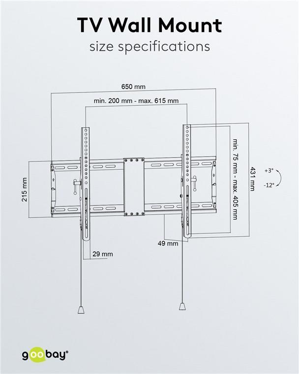 Goobay Pro TV-Wandhalterung Pro TILT (L), L (94-178 cm / 37-70"), Schwarz - für Fernseher von 94,00cm (37") bis 177,80cm (70") (94-178 cm), neigbar bis 70kg (49929)