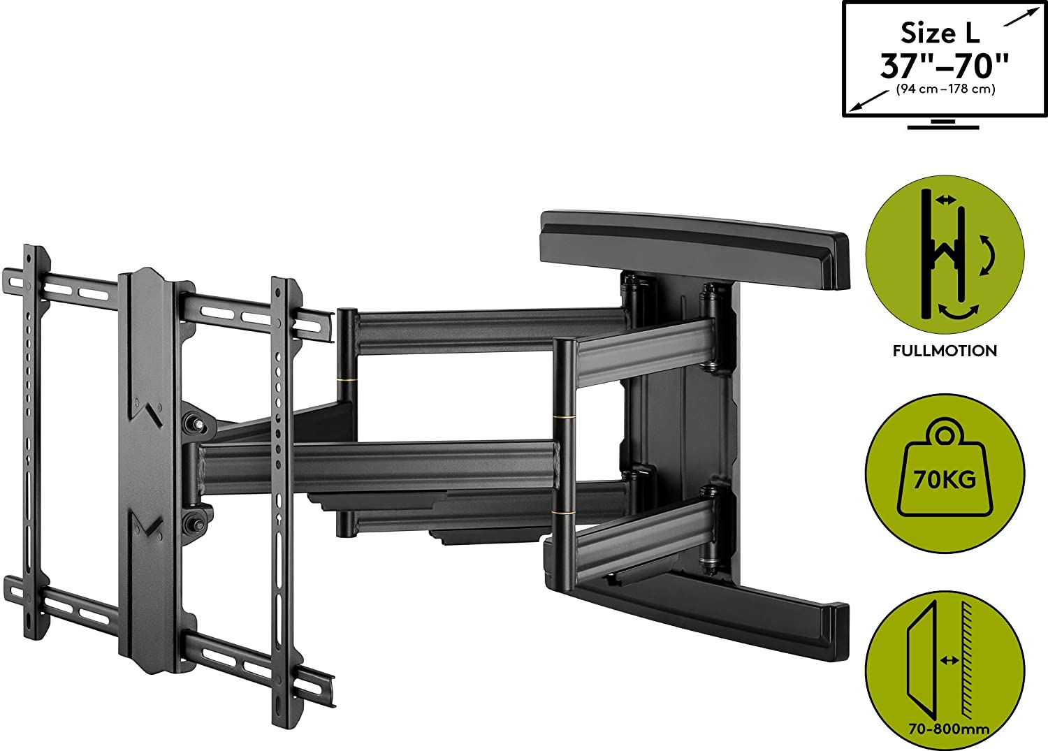 Goobay Pro TV-Wandhalterung Pro FULLMOTION (L) wide Range, Schwarz - für Fernseher von 94,00cm (37") bis 177,80cm (70") (94-178 cm) , vollbeweglich (schwenkbar und neigbar) bis 70kg (49935)