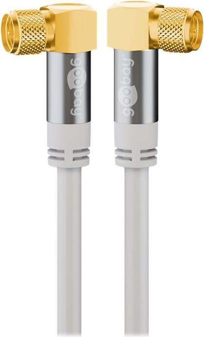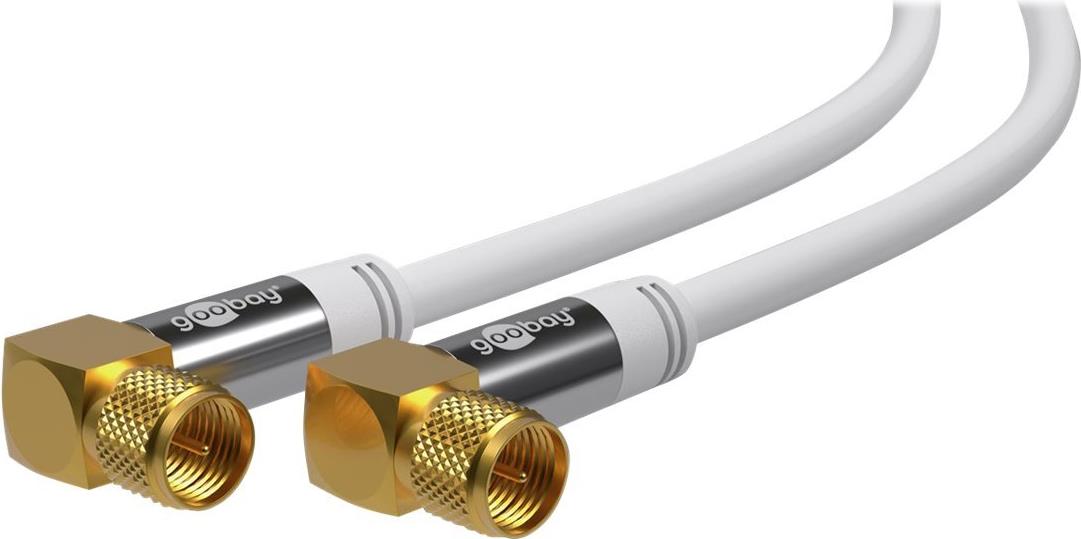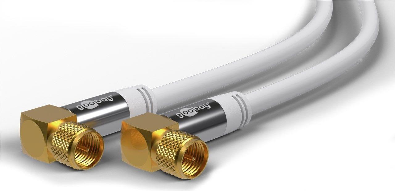 Goobay SAT Antennenkabel (135 dB typ), 4x geschirmt, 10 m, Weiß - vergoldet, F-Stecker 90° > F-Stecker 90° (70490)