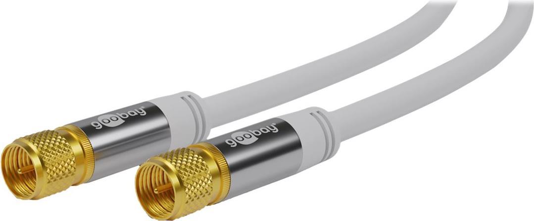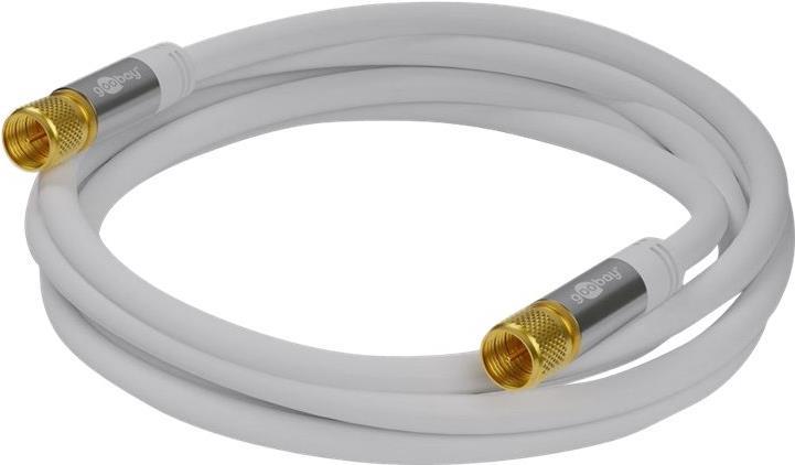 Goobay SAT Antennenkabel (135 dB typ), 4x geschirmt, 3 m, Weiß - vergoldet, F-Stecker > F-Stecker (70606)